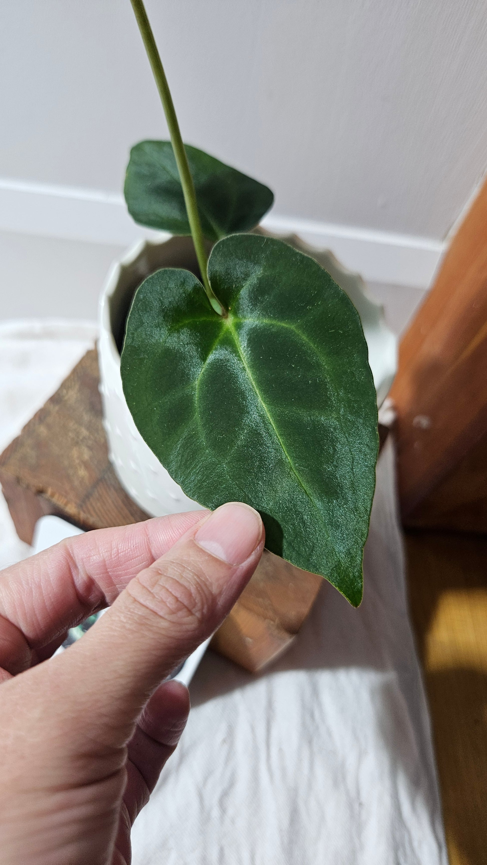 ☔️Apprécie l'humidité ambiante, bien qu'elle ne soit pas absolument obligatoire. Un taux d'humidité ambiant plus haut (supérieur à 40-50%) rend la plante plus tolérante aux excès de sécheresse. Peut aussi aider à obtenir de nouvelles feuilles parfaites.