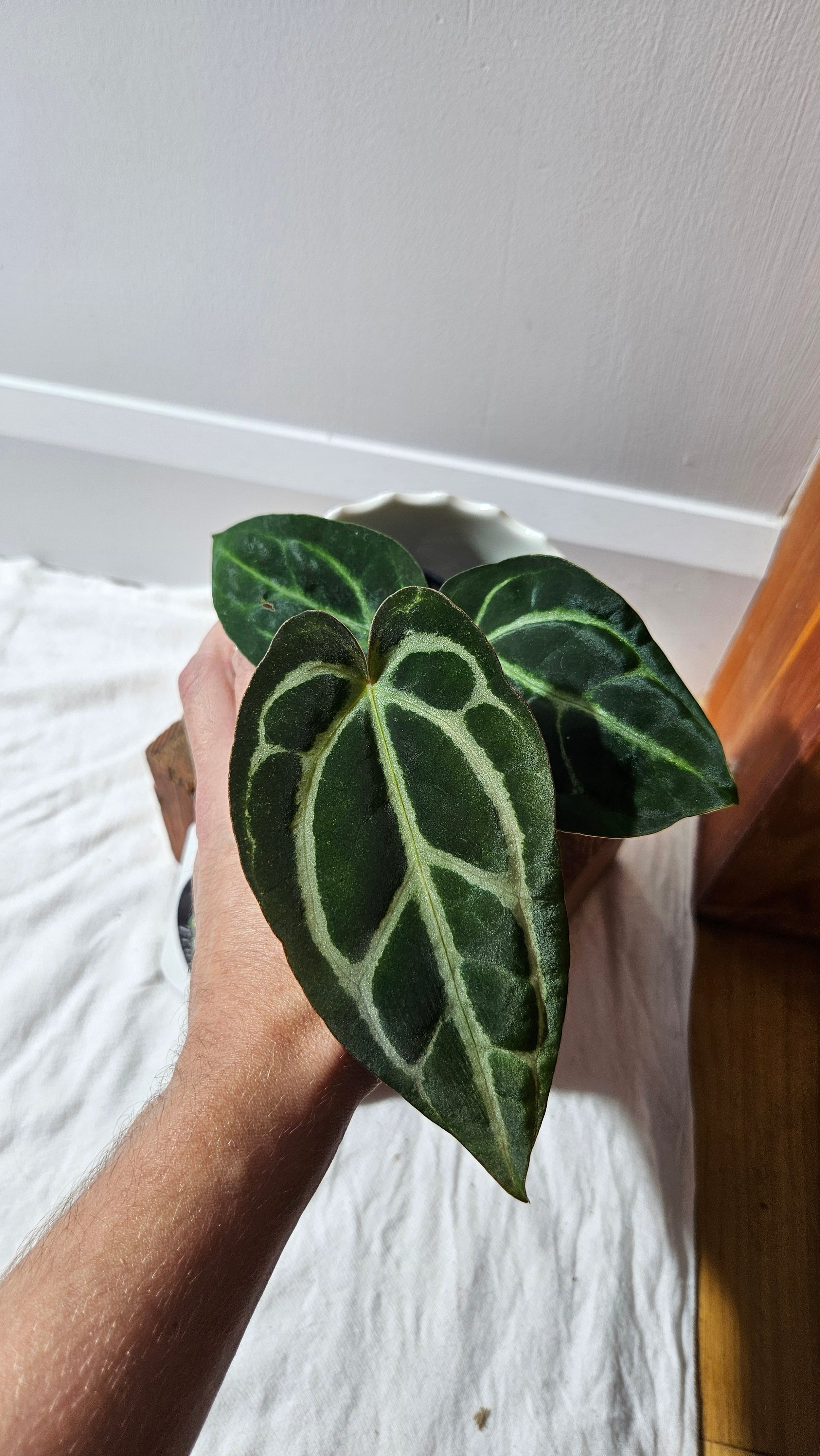 ☔️Apprécie l'humidité ambiante, bien qu'elle ne soit pas absolument obligatoire. Un taux d'humidité ambiant plus haut (supérieur à 40-50%) rend la plante plus tolérante aux excès de sécheresse. Peut aussi aider à obtenir de nouvelles feuilles parfaites.